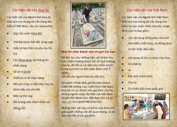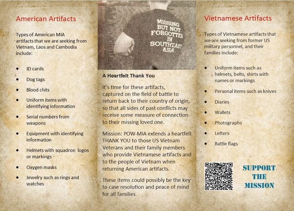 Mission: POW-MIA extends a heartfelt THANK YOU to those US Vietnam Veterans and their family members who provide Vietnamese artifacts and to the people of Vietnam when returning American artifacts.
