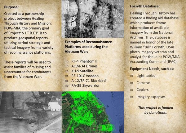 Mục đích của dự án là sử dụng hình ảnh có sẵn từ nhiều nền tảng trinh sát khác nhau được chụp trong thời kỳ Chiến tranh Việt Nam. Việc này nhằm nỗ lực xác định vị trí các địa điểm máy bay rơi của các phi công và thành viên phi hành đoàn Hoa Kỳ mất tích (MIA), cũng như các hố chôn tập thể của các cựu chiến binh.